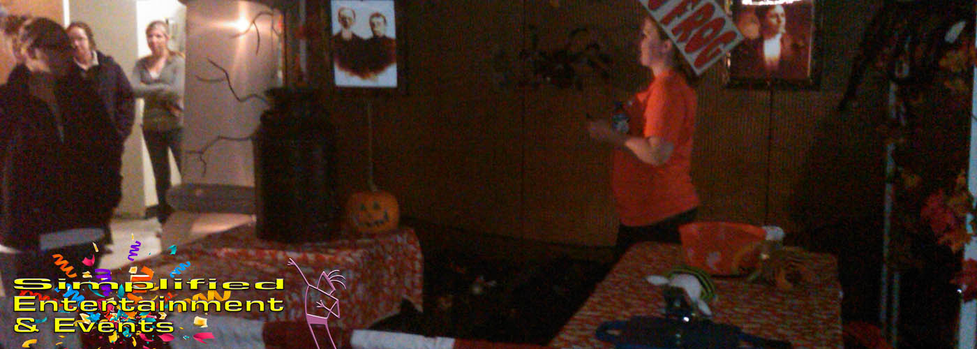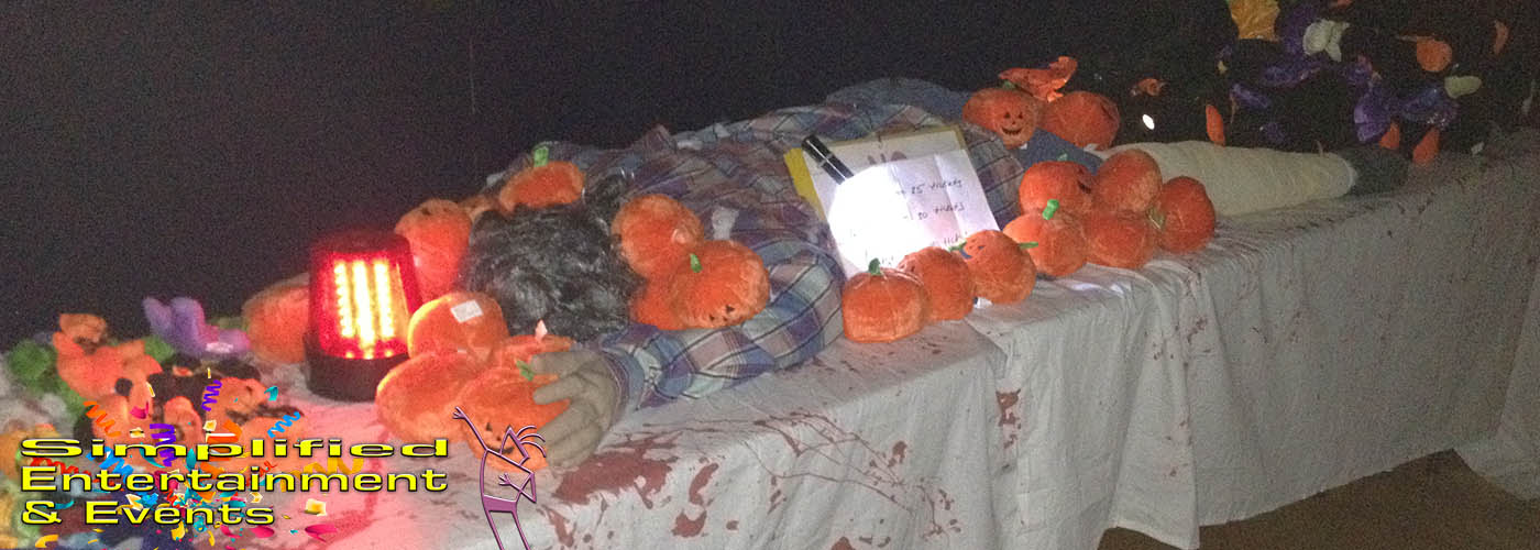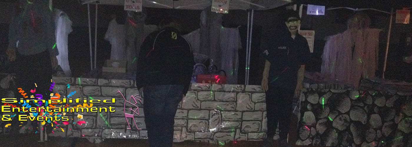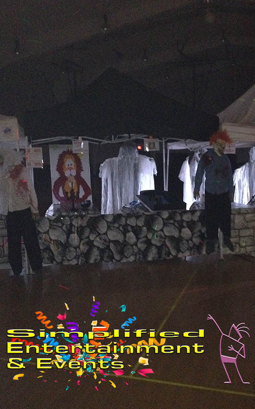 Haunted Carnival or as we like to say CarnEVIL! Simplified Entertainment & Events is known for a quality carnival game package experience. From the best themed Halloween carnival games paired with pumpkin flavored popcorn, pumpkin cotton candy and awesome Halloween themed game prizes. We have two different Haunted Carnival systems. The most popular is the CARNEVIL themed complete with wicked cool carnival side show backdrops, great decor and themed Halloween carnival games. Our second haunted carnival is created with the red and white carnival set that is decorated for Halloween. A wide assortment of flavorful Halloween concessions is also available. Flavored popcorn, specialty cotton candy, candy wall, pumpkin waffles on a stick and more The Haunted Carnival is all inclusive including those with disabilities. The Haunted Carnival typically runs to 3 hours.